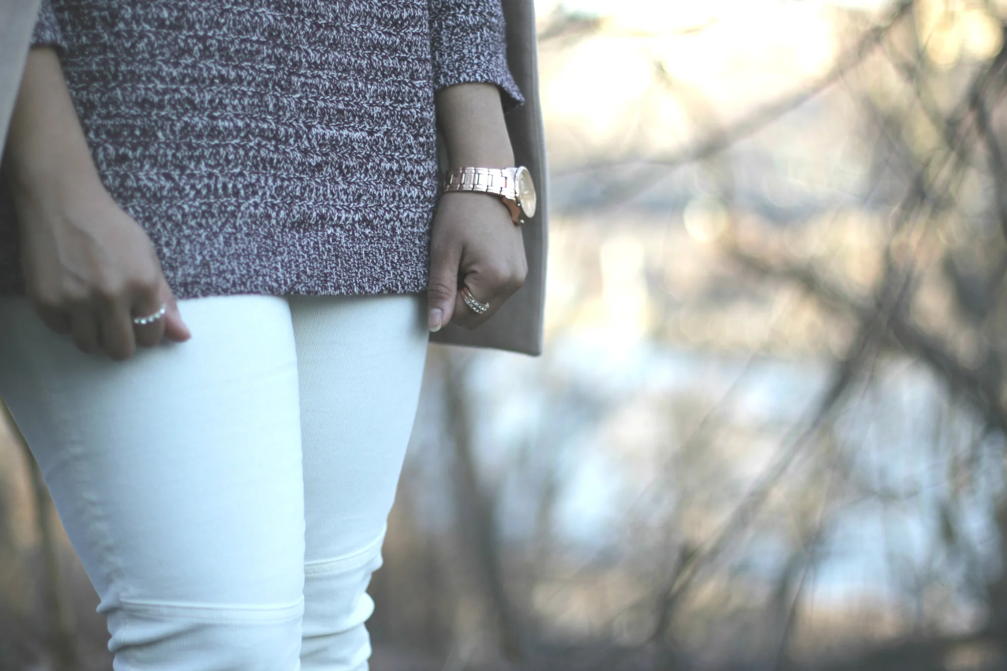 How to wear white in winter can be a tricky thing for some. Heck, wearing white PERIOD freaks people out sometimes. Especially if you can be a bit of a clutz like me. I personally think that finding a pair of white pants (jeans or dress) are very difficult. They're usually too see-through and who the heck wants to show their panties (or cheeks) to the world?! Yes, wearing white can be a conundrum, but, it's definitely do-able!